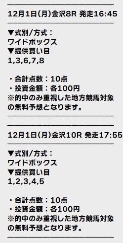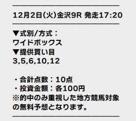 12月2日(火)地方無料予想的中