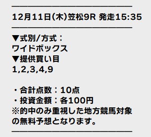 12/11(木)笠松9R無料予想的中