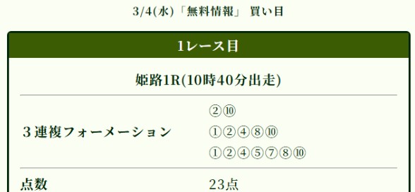 私はサイトの買い目指示通り1点300円で勝負しましたが