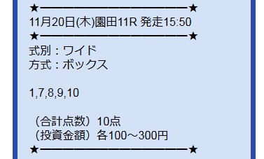 の荒れ模様のレースを無料予想でワイド3種完全的中!