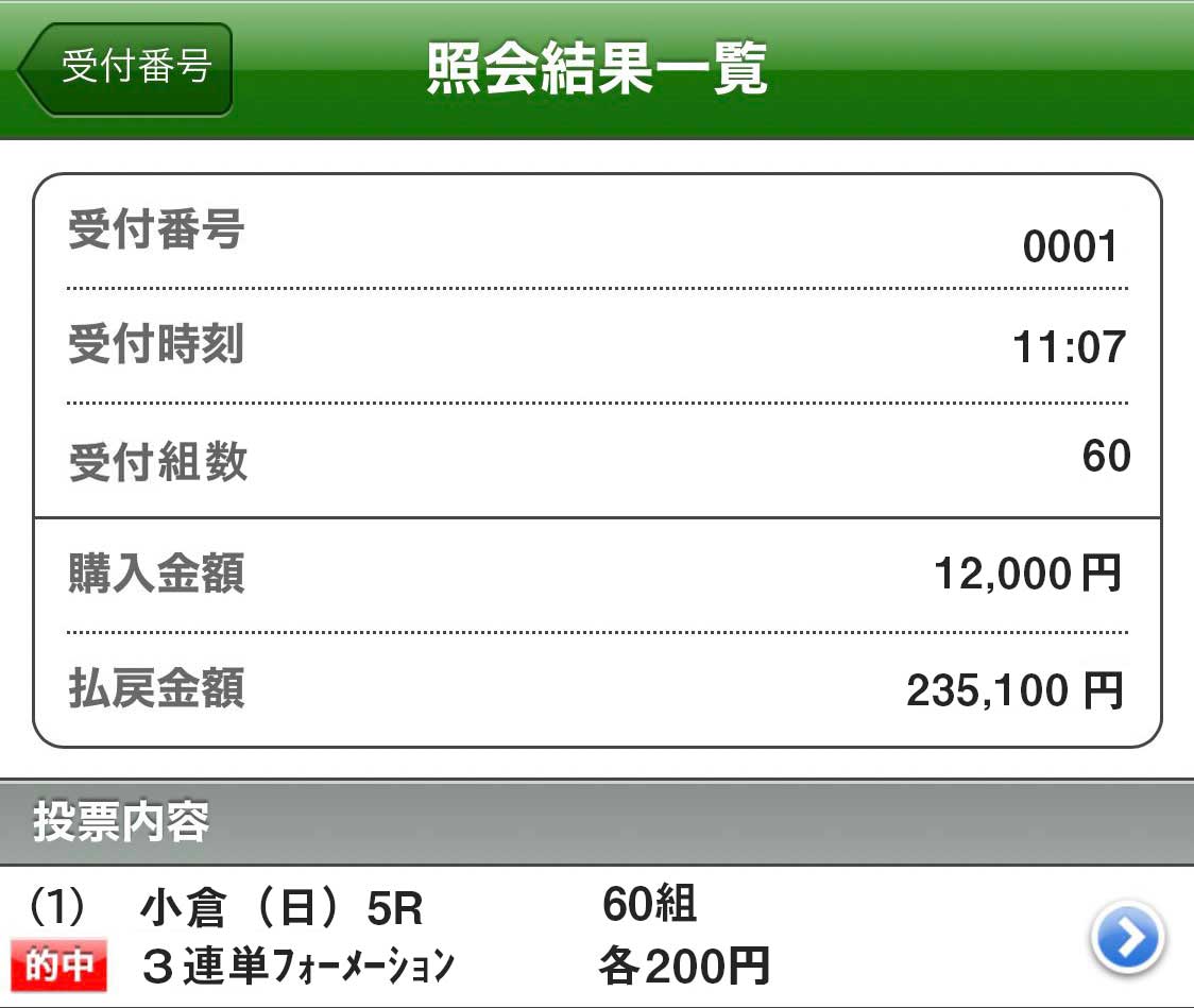 15日(日)の小倉5Rで三連単的中